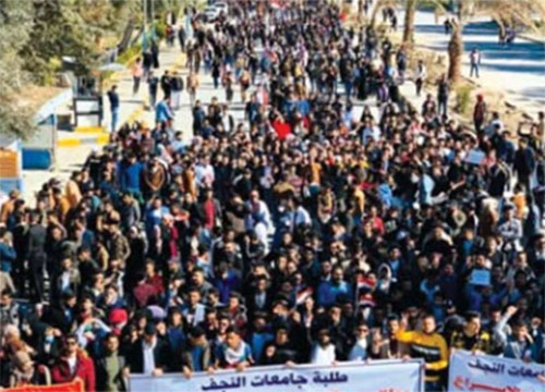 منذ أكثر من اسبوع تتواصل الاحتجاجات المطلبية في النجف، حيث يرفع المتظاهرون شعارات تندد بغياب فرص العمل للعمال العراقيين، وكذلك تطالب بتوفير الخدمات وتعديل سلم الرواتب وشمول العقود الاخيرة للأجور اليومية وفق القرار 315، اسوة بإقرانهم، وتوزيعهم على الدوائر الحكومية، بشكل عادل وفق اختصاصاتهم وليس بشكل عشوائي.