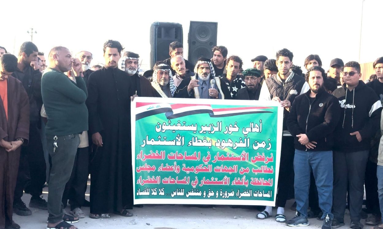 وعبّر أهالي خور الزبير، جنوبي البصرة، عن رفضهم لإقامة محال تجارية ومجمع طبي كمشروع استثماري على قطعة أرض تبلغ مساحتها ثلاثة دوانم، تقع ضمن التصميم الأساس للناحية، وتعد من الجزرات الوسطية والمرافق العامة المحاذية لمنازلهم في منطقة الأسمدة.