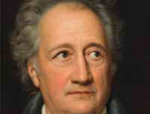 شاعر وعالم طبيعي ومفكر الماني، وقد أثرت آراؤه الفلسفية تأثيرا بالغا في تطور الفكر النظري الاوربي. وقد أعلى غوته من شأن الفكرة القائلة بأن النظرية والتجربة شيء واحد. “في البدء كانت العلة”، هذا هو المبدأ الرئيسي في نظريته للعالم والمعرفة. ولقد اقتنع بموضوعية قوانين الطبيعة، ومحرك التطور الذي هو حبيس داخل هذا التطور. وكان غوته شغوفا بالحاق فكرة التطور بافكار سبينوزا التي كان يفسرها من وحدة الوجود. وقد نادى غوته بأن تفاعل الايجابي والسلبي (“التصاعد” و”الاستقطاب”) مشاهد في كل ظاهرة، وهذا التفاعل يتسبب في ظهور الصفات الجديدة. وقد اعتبر غوته الحركة هي الشكل الاساسي لوجود المادة.