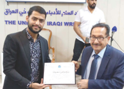 وفي الختام، قدم الناقد فاضل ثامر شهادة تقدير باسم الاتحاد إلى القاص حسين كامل سعدون.