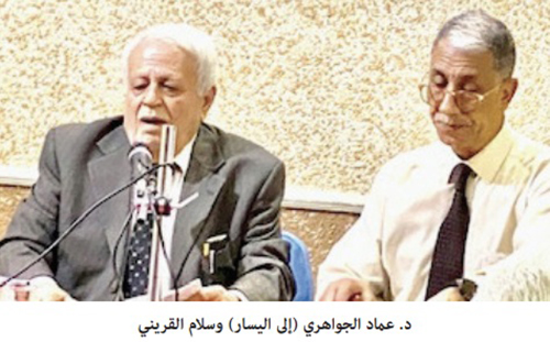 د. عماد الجواهري، وفي معرض حديثه، أشار إلى أن الجواهري الكبير سبق جميع الشعراء في الكتابة عن فلسطين، وانه عبّر عن القضية الفلسطينية في قصائد كثيرة، في حين لم ينتبه غيره من الشعراء إلى هذه القضية، ولم يكن يخطر في بالهم الكتابة عنها.