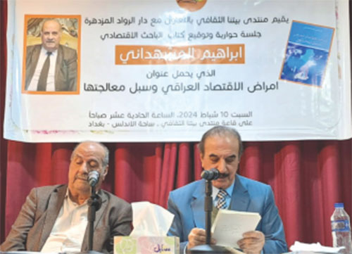ضيّف منتدى “بيتنا الثقافي” في بغداد بالتعاون مع “دار الروّاد المزدهرة” للطباعة والنشر، السبت الماضي، الباحث الاقتصادي إبراهيم المشهداني، الذي عرض ووقّع كتابه المعنون “أمراض الاقتصاد العراقي وسبل معالجتها”، في ندوة حوارية حضرها سكرتير اللجنة المركزية للحزب الشيوعي العراقي الرفيق رائد فهمي، وحشد كبير من المثقفين والمهتمين في الشأن الاقتصادي. أدار الندوة الباحث د. عودة الحمداني، الذي قدم نبذة عن نشاط المؤلف في المجال الاقتصادي، مبينا أن له عمودا صحفيا اقتصاديا أسبوعيا في جريدة “طريق الشعب”.