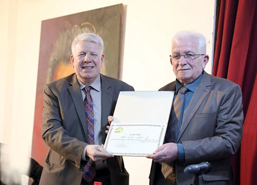 وفي الختام، قدم عضو اللجنة المركزية للحزب الشيوعي العراقي الرفيق د. علي مهدي، شهادة تقدير الى د. حسان عاكف.