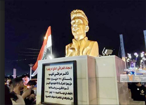 شهدت فلكة الحضارات وسط مدينة الناصرية، مساء الأربعاء الماضي، إزاحة الستار عن نصب نصفي للناشط المدني المُغيّب سجاد العراقي، الذي جرى اختطافه خلال أيام انتفاضة تشرين 2019، ولم يُعرف مصيره حتى اليوم. وحضر مراسيم إزاحة الستار جمهور من الناشطين والمتظاهرين، وآخرون من أبناء مدينة الناصرية، إلى جانب عائلة المختطف طيب الذكر.