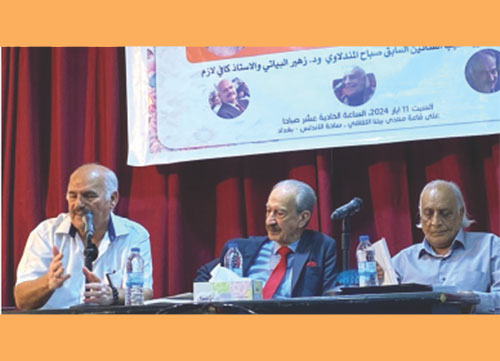 نظم منتدى «بيتنا الثقافي» في بغداد، أخيرا، جلسة بعنوان «بصمات مضيئة.. فنانون مسرحيون مبدعون: إبراهيم جلال، سامي عبد الحميد وقاسم محمد»، ضيّف فيها كلا من نقيب الفنانين الأسبق صباح المندلاوي والفنانين المسرحيين د. زهير البياتي وكافي لازم.