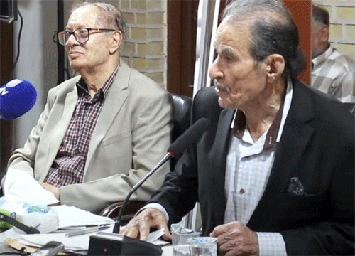 وتخللت الجلسة مداخلات ساهم فيها عدد من الحاضرين، بضمنهم الملحن طارق شعبان، الذي وصف السماوي بالمدرسة، معرجا على تجربته الشعرية المهمة، وعلى مسيرته النضالية واعتقاله في سجن “نكرة السلمان”. فيما اعتبر الشاعر الشعبي عبد الله الشاوي، السماوي قامة من قامات الشعر والنضال.