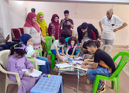وتضمن الاحتفال فقرة رسم حر للأطفال، انتهت بتوزيع الحلوى عليهم.