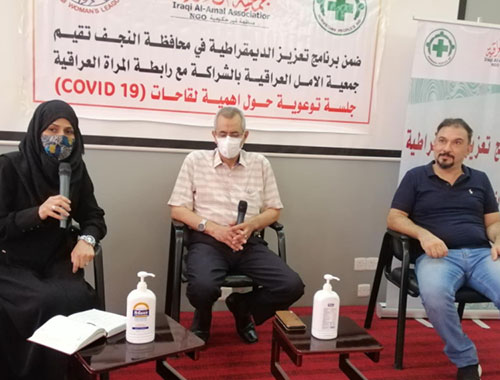 عقدت “جمعية الأمل” العراقية بالشراكة مع رابطة المرأة العراقية في النجف، صباح الاثنين الماضي، ندوة توعوية حول أهمية لقاحات “كوفيد 19”. تحدث في الندوة د. صادق المحنة، عن لقاحات فيروس كورونا المستجد، وأهمية تعاطيها للحد من انتشار الفيروس والقضاء عليه، مشيرا إلى أن اللقاح وسيلة آمنة وذكية لحماية الجميع من الوباء، خاصة في ظل أزمة الموجة الجديدة للفيروس المتحور.