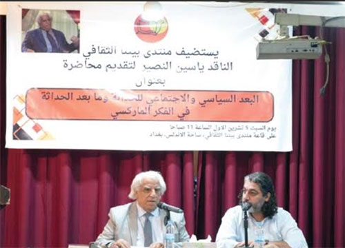 ضيّف منتدى "بيتنا الثقافي" في بغداد، السبت الماضي، الناقد ياسين النصير الذي ألقى محاضرة بعنوان "البعد السياسي والاجتماعي للحداثة وما بعد الحداثة في الفكر الماركسي"، بحضور سكرتير اللجنة المركزية للحزب الشيوعي العراقي الرفيق رائد فهمي وعدد من قيادات الحزب، إلى جانب جمع من المثقفين والمهتمين في الشأن الثقافي.