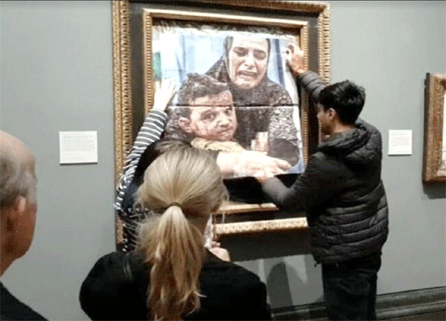 وفي بيان صحفي، قال المتحف أن الشرطة حضرت وألقت القبض على الناشطين، مضيفا أن اللوحة لم يلحق بها أي ضرر.