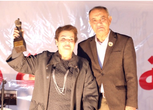 *ألقتها حال تسمها الجائزة من يد الرفيق بسام محي عضو المكتب السياسي للحزب
