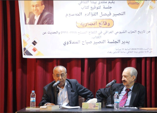 ضيّف منتدى "بيتنا الثقافي" في بغداد، أخيرا، النصير الكاتب فيصل الفؤادي ليتحدث في جلسة ثقافية عن كتابه الجديد الموسوم "وقائع أنصارية/ من تاريخ الحزب الشيوعي العراقي في الكفاح المسلح 1978 – 1991".