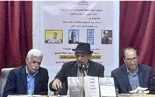 عقدت "جمعية الحفاظ على تراث هادي العلوي"، الثلاثاء الماضي في بغداد، جلسة حول كتاب "هادي العلوي وفكره التنويري"، الذي يضم مقالات له جمعها وقدم لها رئيس الجمعية سعدون هليّل، ومهّد لها د. عدنان عبيد المسعودي.