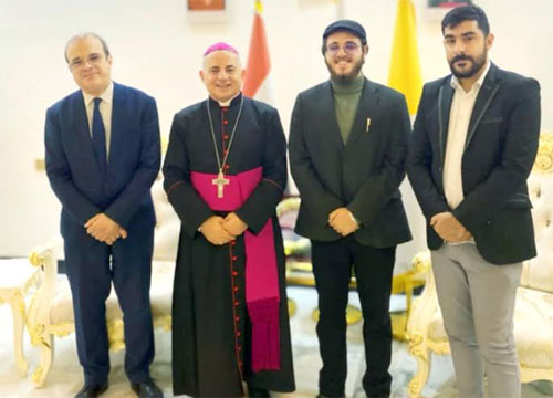 وكان في استقبال الوفد سعادة المطران الاب نجيب وسعادة السفير الفرنسي. وخلال اللقاء جرت مناقشة واقع المسيحيين في نينوى، وسبل تعزيز التعايش السلمي.
