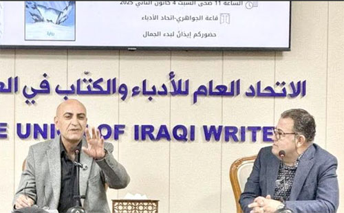 أدار الجلسة التي التأمت على قاعة الجواهري في مقر الاتحاد، الروائي حسين محمد شريف، الذي ألقى الضوء على السيرتين الذاتية والإبداعية للمحتفى به.
