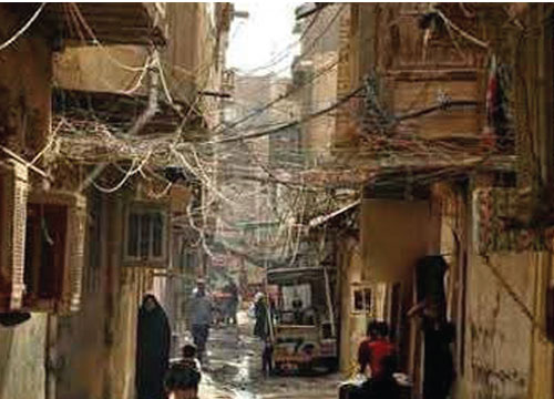 بين الأزقة الضيقة في سوق حنون بحي "التوراة"، التابع لمنطقة "قنبر علي" في جانب الرصافة بالعاصمة بغداد، تقتادك رائحة خشب الصاج الرطبة المنبعثة من واجهات تلك المنازل المبنية من الخشب والزجاج، التي تعرف في اللهجة العراقية باسم "الشناشيل".