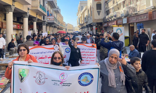 تزامنا مع الحملة الأممية ١٦ يوما لمناهضة العنف ضد المرأة، وتحت شعار "مكافحة العنف الموجه ضد النساء والفتيات ركيزة أساسية في الاستقرار المجتمعي"، نظمت رابطة المرأة العراقية بالشراكة مع "شبكة النساء العراقيات" و"شبكة حقي" للمدافعات عن حقوق الإنسان و"شبكة المستقبل" الديمقراطية العراقية، صباح أول أمس الجمعة، وقفة جماهيرية في شارع المتنبي.