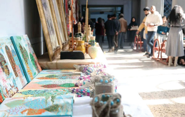 وتوزعت على أرض المهرجان أعمال من إنتاج طلبة المعهد، تضمنت مشغولات يدوية ومنحوتات بخامات مختلفة ولوحات خط. كما نُظم خلال المهرجان عرض أزياء تاريخي مُستلهم من حضارة البلاد.