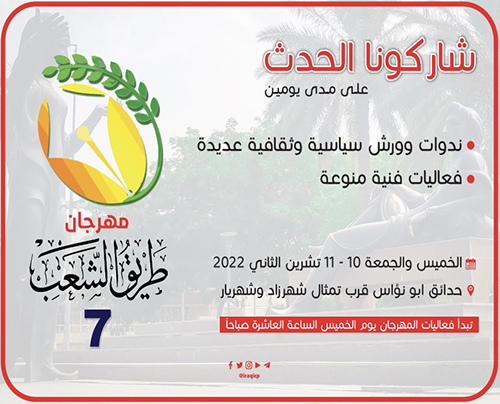 المتحدثــــون: الدكتور جاسم الحلفي ، الشاعر والاكاديمي فارس حرّام ، الناشطة أسماء جميل ، الناشط والصحفي حسين العامل