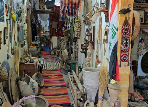 يوثق “متحف الأسلاف” في قرية بغديدا بمحافظة نينوى، على جدران غرفه المتواضعة وأرضياتها، جانباً من حياة العراقيين. إذ يضم مقتنيات منوعة، من أدوات تراثية للزراعة والطبخ والحياكة والتطريز، إلى أدوات تصوير وآلات موسيقية وبسط مصنوعة يدويا وكتب وكراسات قديمة وغيرها. في حديث صحفي، تقول مديرة المتحف السيدة غادة فصيح انطانيوس، أنها افتتحت “متحف الأسلاف” في بغديدا عام 2020، بعد أن كان لديها قبل ذلك متحف مماثل في بغداد. وتوضح أن “هوايتي منذ الصغر هي جمع التحف والقطع القديمة والتراثية. وقد بدأت باقتناء هذه المواد منذ سنين طويلة. إذ كنت أشتري كل ما أعثر عليه منها”، مشيرة إلى أن “المتحف يستقبل زائرين من مناطق مختلفة، يأتون للتعرف على تاريخ الأسلاف وطبيعة حياتهم”. وتهدف غادة من خلال متحفها، إلى “حفظ تراث العراق الذي نملك منه الكثير، والذي يتعرض للإهمال والنسيان”. فيما تتطلع إلى الحصول على الاهتمام والدعم من الجهات الحكومية، من أجل أن تفتتح متحفا أكبر، لحفظ القطع الأثرية كبيرة الحجم.