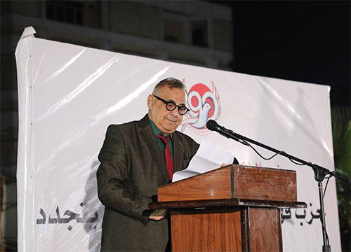 إن حزبنَا إذ يعتز بالمبدعين من الشعراء الشعبيين اعترافا منه بالدور الذي قاموا به طيلةَ عقودٍ خلال نضالاتِ شعبنا وهم يستنهضون فيه بصور شعرية كسبائكَ معدنيةٍ نفيسة، الوعيَ والقيمَ الأخلاقيةَ والجماليةً بين بنات وأبناء شعبنا، تعينهم في النضال نَشْدًا لتحقيق يومٍ وغدٍ أفضل بعيشٍ كريم يستحقهُ شعبُنا الذي عانى ما عانى من جور الأنظمة الرجعية والدكتاتورية والفاسدة.