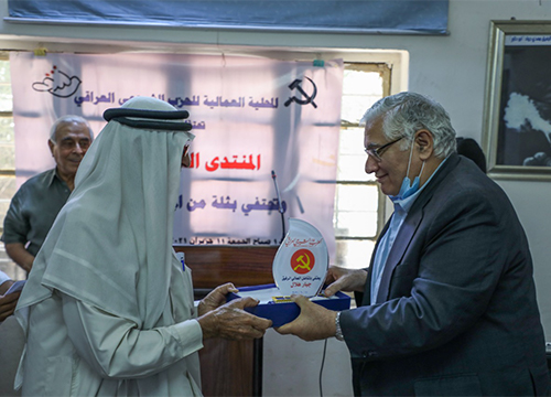 وأخيرا اسمحوا لي ان اشير الى اننا قررنا اغتنام فرصة اقامة احتفالنا هذا، لتكريم عدد من رفاقنا العمال الشيوعيين، الذين كرسوا سنين طويلة من اعمارهم، وربما اعمارهم كلها، للنضال من اجل حقوق ومصالح الطبقة العاملة العراقية وجماهير الكادحين والشغيلة، وخاضوا المعارك الكفاحية وضحوا بالكثير في سبيلها. فهي مناسبة لرد جميلهم والتعبير عن الوفاء والتقدير لهم ولتضحياتهم.