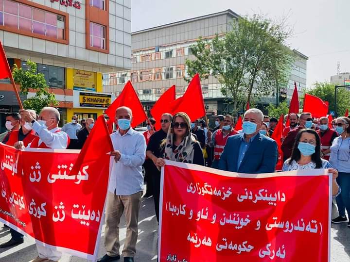 نظم العشرات من العمال والمثقفين والمنظمات العمالية، السبت الماضي، تظاهرة احتجاجية في شارع سالم بمدينة السليمانية، للمطالبة بتطبيق القوانين النافذة التي تؤمن حقوق العمال وتحميها.