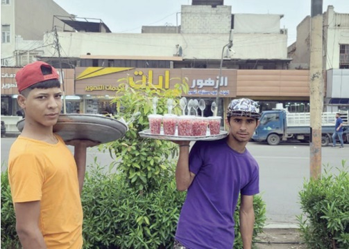 ويقول رضا العيداني وهو عامل وبائع متجول إن أجور العمل التي يحصل عليها لقاء عمله في تنظيف أنابيب الصرف الصحي ضئيلة جدا، مما أضطر الى العمل كبائع متجول لفاكهة الرمان.