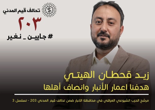 زيد قحطان الهيتي لأهالي الانبار: مهمتي وطنية قبل ان تكون انتخابية وسأحرص على تمثيل المواطنين والدفاع عن مصالحهم