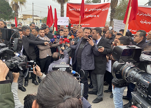 وخرج الآلاف من المعلمين والمدرسين بمحافظة السليمانية، للتظاهر في عدد من الشوارع الرئيسة في المحافظة.