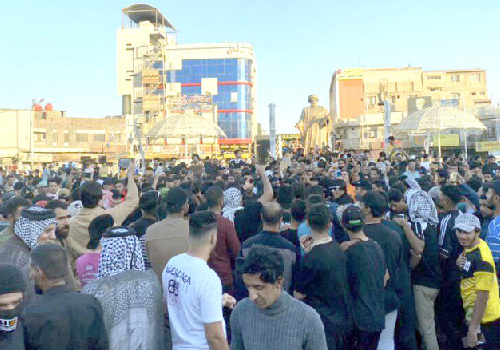 وشهدت ساحة التحرير، وسط بغداد، أمس الاول الجمعة وقفة احتجاجية لمئات المتظاهرين وذوي الشهداء والجرحى، احياءً للذكرى الخامسة لانتفاضة تشرين، مجددين المطالبة بـ"وطن نعيش فيه بكرامة".