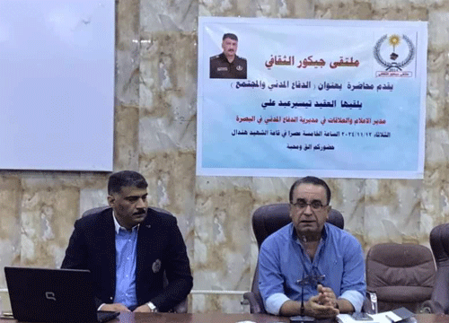 ضيّف "ملتقى جيكور" الثقافي في البصرة، أخيرا، مدير الإعلام والعلاقات العامة في مديرية الدفاع المدني في المحافظة، العقيد تيسير عبد علي، الذي تحدث عن "الدفاع المدني والمجتمع"، في جلسة حضرها جمع من المثقفين.