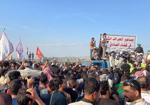 ويواصل المئات من أهالي قضاء الصادق في محافظة البصرة اعتصامهم المستمر أمام بوابة حقل غرب القرنة 1، احتجاجًا على نقص الخدمات وعدم توفير فرص العمل في المنطقة.