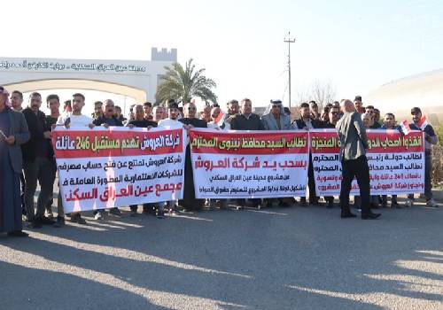 وفي نينوى، نظم العشرات من المواطنين الذين اشتروا عقارات في مجمع عين العراق السكني وقفة احتجاجية أمام المجمع، مطالبين بسحب يد شركة العروش الاستثمارية من المشروع واستكمال إجراءات تسجيل عقاراتهم التي تأخرت لفترة طويلة. وأشار المشاركون إلى أنهم حصلوا على منازلهم منذ أكثر من عامين، ورغم أن المنازل قد أنجزت بالفعل، إلا أن الشركة المستثمرة لم تكمل إجراءات التسجيل واحتفظت بالمنازل مغلقة.
