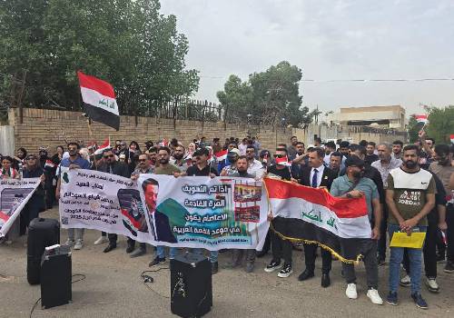 وتظاهر العشرات من المهندسين والجيولوجيين، أمام مشروع حقن الماء التابع إلى شركة لوك أويل الروسية في حقل غرب القرنة 2 النفطي شمالي البصرة.