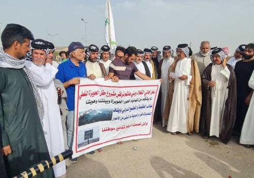 نظم العشرات من سكان هور الحويزة في محافظة ميسان، وقفة احتجاجية معبرين عن رفضهم الشديد لمحاولات تجفيف أجزاء من الهور وتحويلها إلى مواقع نفطية، ومحذرين من تداعيات خطيرة على حياتهم وبيئتهم ومصدر رزقهم التقليدي.