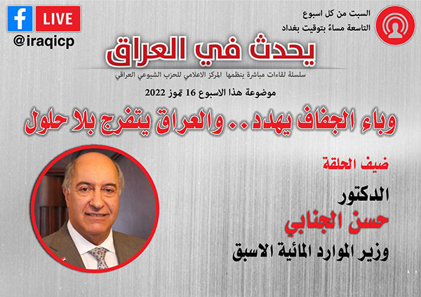 ضمن سلسلة حلقات برنامج “يحدث في العراق” الذي يبث عبر صفحة الحزب الشيوعي العراقي على فيسبوك، بتنظيم من قبل المركز الإعلامي للحزب، ضيّف البرنامج السبت الماضي، وزير الموارد المائية الأسبق حسن الجنابي للحديث عن ازمة الجفاف ونقص المياه التي تواجه البلاد. وحاوره الزميل الإعلامي بسام السينمائي.