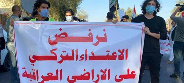 وفي البصرة، طالب العشرات من المتظاهرين بقطع العلاقات مع تركيا، احتجاجا على العدوان.
