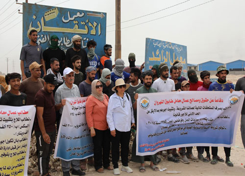 وقد نظم العمال وقفة احتجاجية أمام معامل الطابوق، رفعوا خلالها جملة من المطالب، بضمنها شمولهم بقانون التقاعد والضمان الاجتماعي للعمال، فضلا عن زيادة أجورهم مقابل ما يقدمونه من أعمال قاسية، وتحديد ساعات العمل، كونهم يقضون قرابة 16 ساعة في أعمال صعبة بين إخراج الطابوق من الأفران وتحميله الى الشاحنات، مقابل أجور زهيدة.