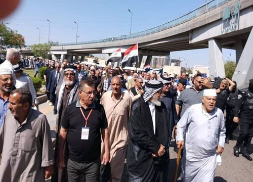 نظمت جمعية المتقاعدين تظاهرة حاشدة قرب مبنى مجلس الوزراء في العاصمة بغداد، مطالبين بزيادة رواتبهم.