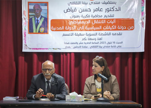 أقام منتدى “بيتنا الثقافي”، صباح السبت 16 أيلول 2023، جلسة بعنوان: “آليات الانتقال الديمقراطي من دولة الكيانات السياسية الى الدولة المدنية” حاضر فيها عميد كلية العلوم السياسية – جامعة النهرين، الدكتور عامر حسن فياض، مقدما ايجازات سريعة وشاملة للعديد من القضايا المرتبطة بالديمقراطية، بدءا من الانتباهات التي تثيرها وصولا الى ما آلت اليه الممارسة خلال العقدين الأخيرين.