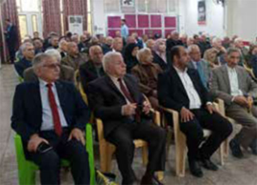 وعلى قاعة آذار، حضر حشد من الرفاق والاصدقاء إلى الحفل الذي بدأ بالاستماع إلى النشيد الوطني العراقي والوقوف دقيقة صمت حدادا على أرواح الشهداء.