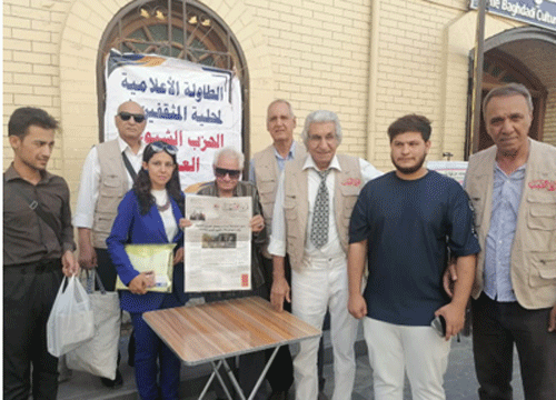 نظم فريق محلية المثقفين يوم الجمعة الماضي، طاولة إعلامية في شارع المتنبي، حيث وزع خلالها ثلاثة أعداد من جريدة "طريق الشعب"، بالإضافة إلى العدد الأخير من الملحق الثقافي ومطبوعات تتعلق بالتعديلات المقترحة على قانون الأحوال الشخصية رقم 188 لسنة 1959.