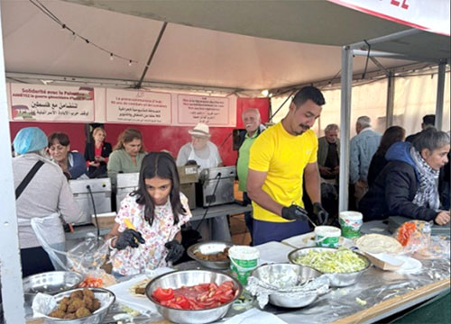 الخيمة، التي عُرفت بخصوصيتها وحيويتها، تحولت إلى مركز تلاقت فيه الجهود التطوعية؛ فبينما انشغل البعض في إعداد الطعام والمشروبات، تولى آخرون تجهيز أجهزة البث والتسجيل، فيما حمل آخرون كاميراتهم لتوثيق اللحظات. وكانت الأغاني العراقية والكردية تملأ الأجواء، في انسجام مع روح المهرجان التي جمعت آلاف المشاركين من مختلف القارات، يتوحدون حول قيم إنسانية وتضامن واسع مع الشعب الفلسطيني في مواجهة العدوان الصهيوني.