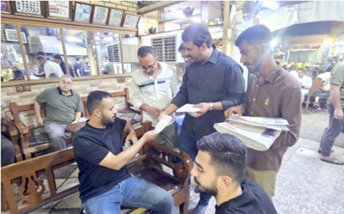 نظم مرشح الحزب الشيوعي العراقي في النجف للانتخابات البرلمانية المقبلة، المهندس الزراعي الاستشاري عبد الكريم بلال العارضي، أول أمس الأحد، جولة راجلة في سوق الحي العسكري بمركز المحافظة، وذلك في إطار حملته الإعلامية.