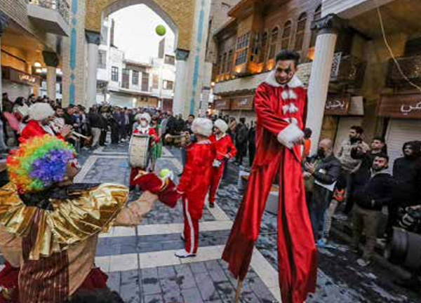 وتوافد المئات في ساعات متأخرة من الليل على الشارع الذي تزينت شرفاته بأضواء عيد الميلاد. فيما علت أصوات الأغاني العراقية من مكبرات الصوت في الشارع وسط أجواء احتفالية.
