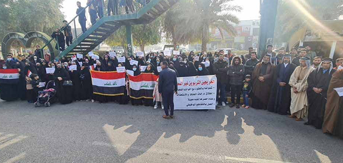 ونقل مراسل “طريق الشعب” احمد عباس، ان “عوائل المتظاهرين وجمع من الوجهاء، حضروا معهم للتضامن والمطالبة بحقوقهم”.