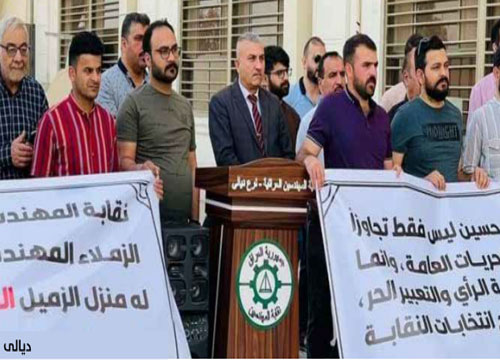 من جهتهم، نظم العشرات من المهندسين في ديالى، وقفة احتجاجية لإدانة استهداف نقيب المهندسين في المحافظة.