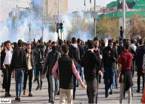 من جانبهم، نظم العشرات من المتظاهرين وقفة أمام مبنى ديوان محافظة ميسان في ساحة التظاهرات، احتجاجا على صبغ الجدران التي كانت تحمل صور شهداء انتفاضة تشرين.