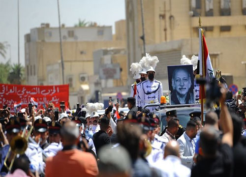 ونقل بعدها النعش الى مقر اتحاد الأدباء والكتّاب وسط بغداد، لتبدأ مراسيم التشييع الرسمية بحضور المئات من محبي فقيد الوطن، من مختلف الاعمار والاجيال رغم ان الفقيد قضى الكثير من عمره في غربته القسرية.